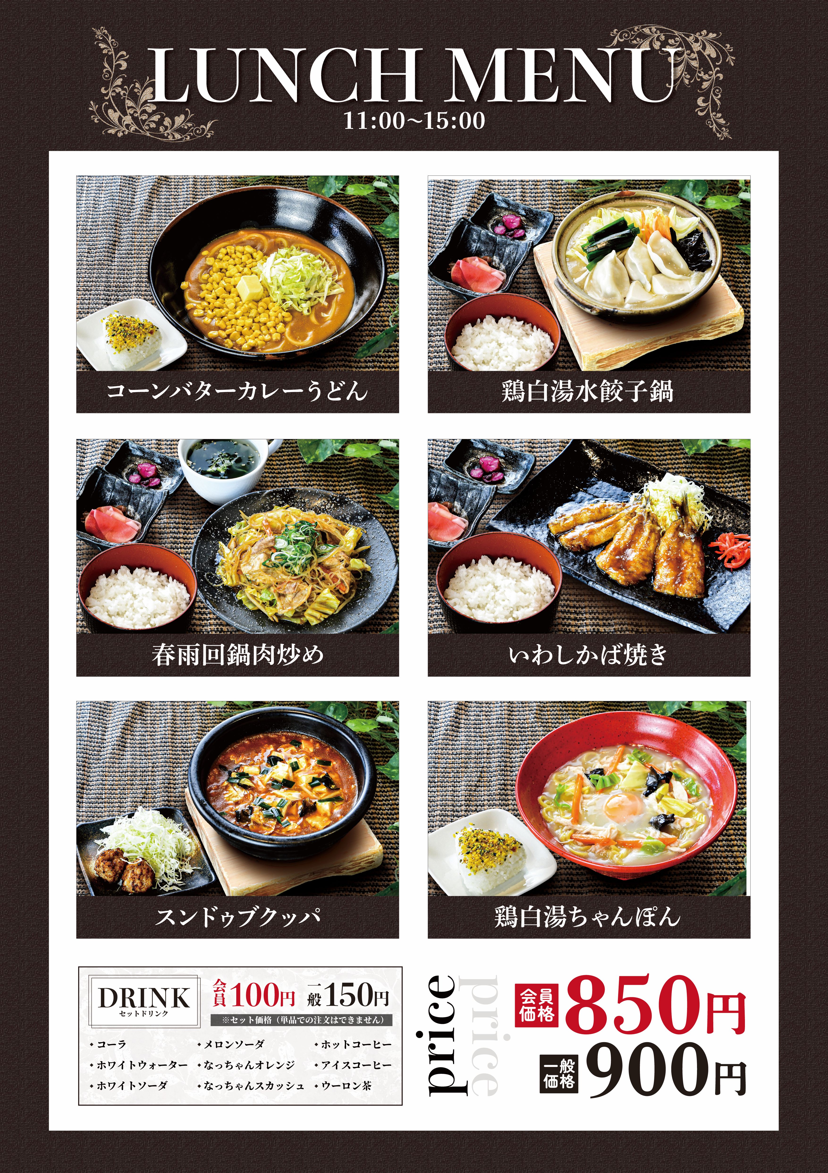 | 営業時間 | 11:00~22:00 (ラストオーダー21:30) |