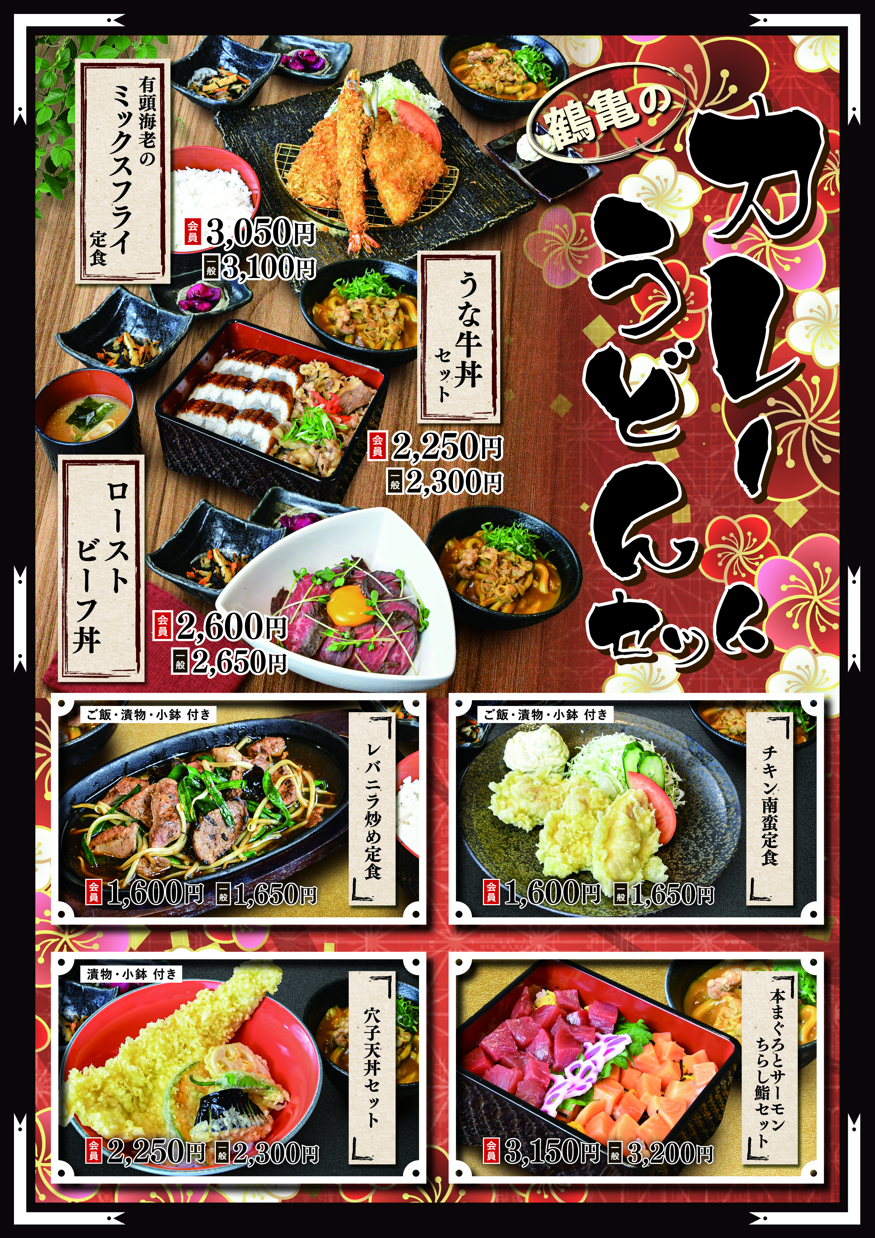 お食事 鶴亀は、ツルカメ会員のお客様に1品50円の割引があります!